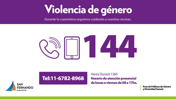 Durante la cuarentena, los profesionales del área de Políticas de Género y Diversidad Sexual del Municipio atienden telefónicamente al 4746-6137 y de forma presencial en las oficinas de Henry Dunant 1369, de 8 a 17 hs., asesorando y conteniendo a las víctimas de violencia de género y familiar. Además, funciona el Botón ‘D.A.M.A’ asignado a mujeres que sufrieron agresiones y se presentaron proyectos culturales de concientización.