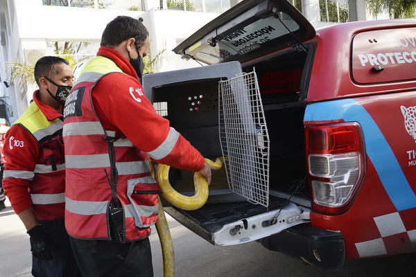 Gracias al aviso de un vecino, personal de Defensa Civil logró rescatar una serpiente pitón que se encontraba sobre la calle, en Tigre centro. Luego de constatar el buen estado del reptil, se lo llevó hasta el Serpentario Educativo Tigre –ubicado en el Puerto de Frutos– donde será tratado por profesionales para su cuidado y seguimiento. Al ser un animal originario de Asia y a menudo elegido como mascota exótica, las autoridades locales suponen que podría haberse escapado de una vivienda o haber sido abandonada por su dueño.