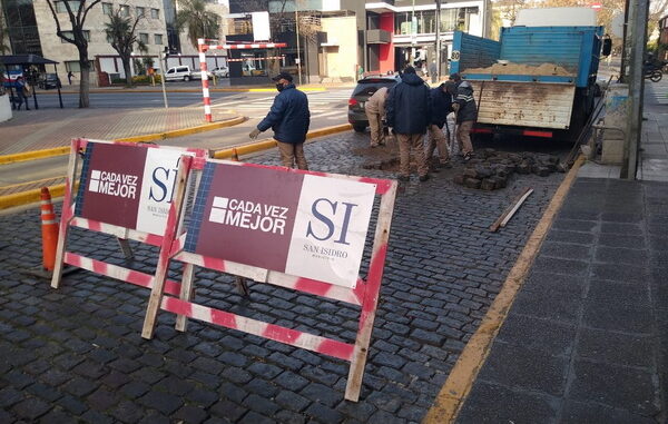 El Municipio de San Isidro realizó trabajos de mejoras y mantenimiento del adoquinado en distintos sectores de la calle Alem, en el centro de San Isidro.