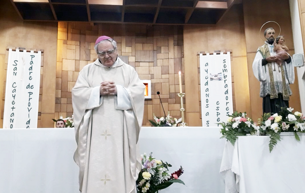 Refiriéndose al trabajo, el Obispo puntualizó: “Generalmente cuando hablamos de trabajo, hablamos de una carga pesada”, y reforzó esta idea mencionando lo que nos dice el Señor en el libro del Génesis: “Te ganarás el pan de cada día con el sudor de tu frente,” para luego remarcar que: “A veces no solo con el sudor de la frente, sino también con el sudor del corazón, ya que las condiciones de trabajo a veces son tan dolorosas y tan difíciles y mal remuneradas, que a veces lo ganamos no solo con el sudor de la frente, sino con el sudor del corazón” y reforzó diciendo: “Sobre todo en esta época en la que nos preparamos para sufrir crisis muy grandes, que tenemos que poner en manos de San Cayetano”.