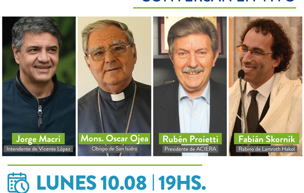 A las 19 horas por Facebook y Youtube de Vicente López, el intendente Jorge Macri conversará en vivo con Monseñor Oscar Ojea, Obispo de San Isidro, Rubén Proietti, Presidente de ACIERA, y Fabián Skornik, Rabino de Lamroth Hakol.