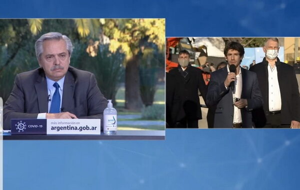 Acompañaron al Presidente en la videoconferencia desde la Quinta de Olivos, el Presidente de la Cámara de Diputados, Sergio Massa; el Ministro del Interior, Eduardo “Wado” de Pedro; el Ministro de Transporte, Mario Meoni; Silvina Batakis, Secretaria de Provincias del Ministerio del Interior; y el Gobernador de la Provincia de Buenos Aires, Axel Kicillof, desde La Plata.
