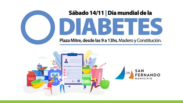 El Municipio de San Fernando, a través de su Secretaría de Salud Pública, Desarrollo Humano y Política Ambiental, se suma nuevamente al ´Día Mundial de la Diabetes´, organizando una jornada de concientización el sábado 14 de noviembre, de 9 a 13hs, en la Plaza Mitre, ubicada en Madero y Constitución.