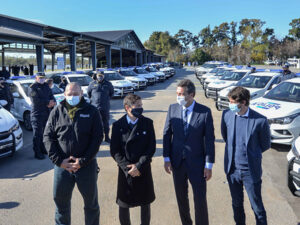 - 10 camionetas Toyota Hilux 4×2, con equipamientos para patrulleros que incluye blindaje, rejas exteriores, defensas delanteras, mamparas separadoras de habitáculo, balizamientos, difusión sonora y ploteos.
