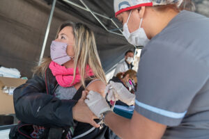 En ese sentido, la campaña de vacunación se llevó a cabo con un estricto protocolo sanitario con todas las medidas de bioseguridad correspondientes. Se formaron filas, al aire libre, respetando el distanciamiento social con uso obligatorio de tapabocas. Después, los vecinos pasaban a una carpa para aplicar la vacuna, donde también había otra mesa del Centro de Atención Primaria de la Salud encargada de entregar los certificados.