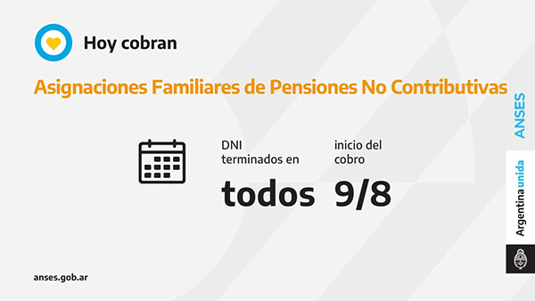 Desde hoy y hasta el 10 de septiembre, se pagan las Asignaciones Familiares de Pensiones No Contributivas (PNC) para todas las finalizaciones de documento.
