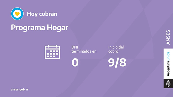 La Anses y la Secretaría de Energía impulsan en conjunto el Programa Hogar, mediante el cual se otorga un subsidio para la compra de garrafas en viviendas que no están conectadas a la red de gas natural. Hoy cobran este beneficio las personas con documentos terminados en 0.