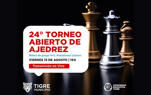 El municipio de Tigre invita a vecinos y vecinas a participar en el torneo 24° de ajedrez a través de la plataforma Lichess. El evento, organizado por la Subsecretaria de Educación del Municipio, será transmitido en vivo por la cuenta de Youtube Club Ajedrez Tigre. Inscripciones por educacion@tigre.gob.ar.