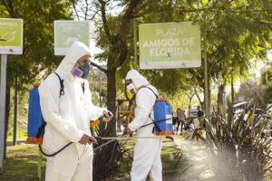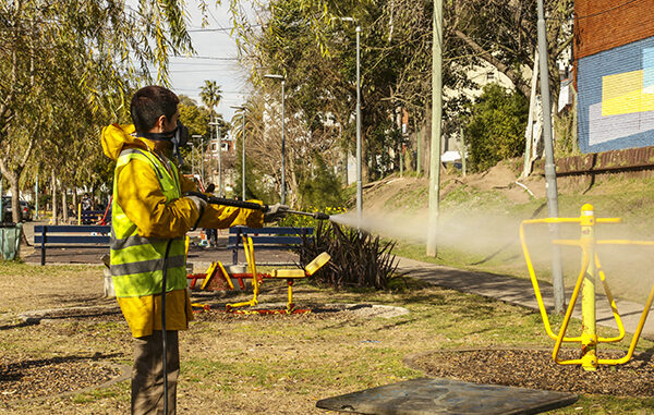 El equipo municipal de Higiene Urbana realiza todas las semanas operativos de desinfección de vía pública, enfocándose en los principales puntos de tránsito de personas. En esta oportunidad, el equipo de Higiene Urbana trabajó en la Plaza Amigos de Florida.