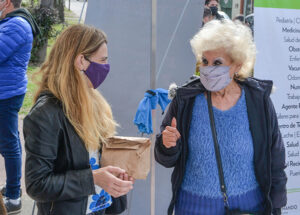 La vecina María del Carmen dijo: ”Esto está re bien, porque me cuesta caminar. Ya tengo las dos dosis de COVID, y la doctora me dijo que después podía vacunarme contra la gripe después de 21 días. Por eso le agradezco a Juan Andreotti que nosotros los viejos podamos vacunarnos acá”.