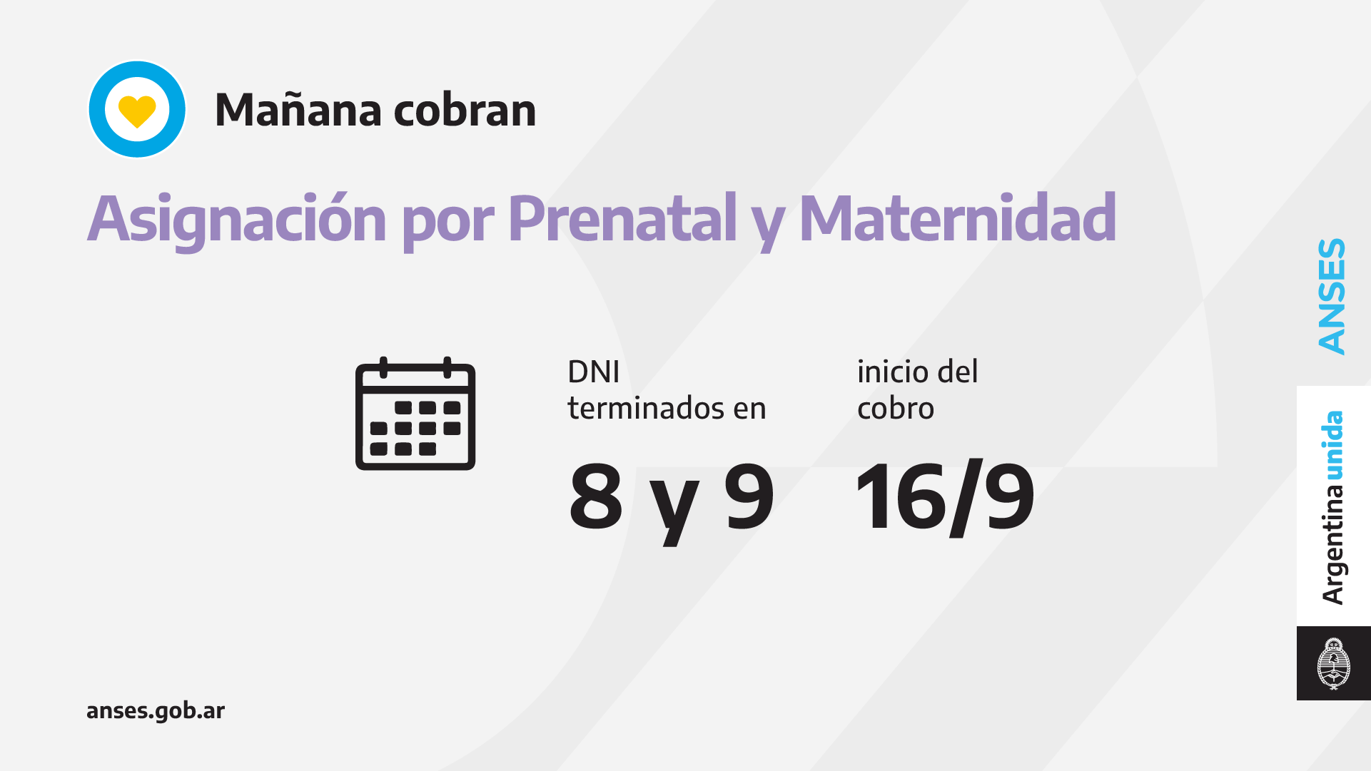 Las titulares de la Asignación por Prenatal y Asignación por Maternidad con documentos terminados en 8 y 9 perciben mañana su prestación.