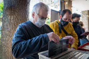 Con un movimiento ágil de dedos, rápido y preciso, Juana Pannunzio, vecina de la zona, revisa sin pausa más de una decena de bateas. Fanática de la banda Almendra, encuentra el primer álbum del grupo. “Es la primera vez que vengo, me contó un amigo que es fanático de los vinilos como yo, así que no dudamos en venir. Le agradezco al municipio por esta iniciativa, esto es hermoso. Hoy con las aplicaciones y las nuevas tecnologías se están perdiendo los orígenes”, expresa entusiasmada.
