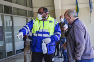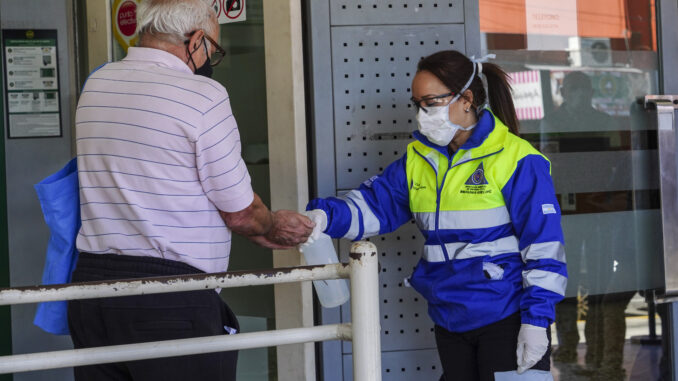 Vicente López continúa acompañando a quienes se acercan a realizar trámites en las entidades bancarias. El personal de la Municipalidad garantiza el distanciamiento entre personas, colabora en tareas de sanitización y desinfección, y brinda asistencia en primeros auxilios. En esta ocasión, se trabajó en el Banco Provincia de Munro.