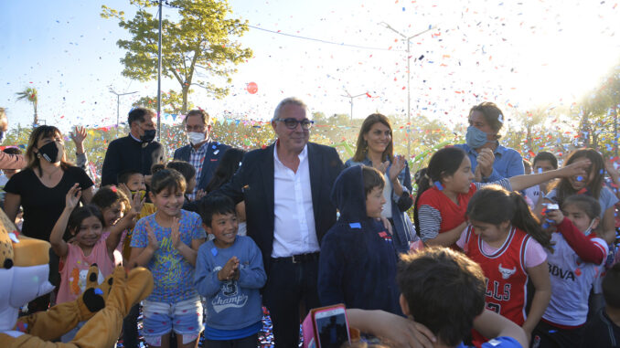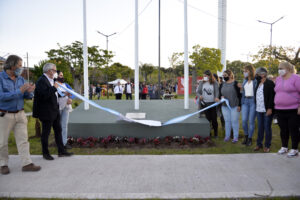 El intendente y la concejala encabezaron la reinauguración de la Plaza de la Unidad en Troncos del Talar, que cuenta juegos para niños y niñas, mesas de ping pong, canchas de fútbol tenis, cancha de mini básquet, nueva parquización, mobiliario nuevo, luminaria LED y sectores aeróbicos.