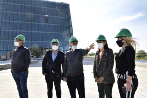 El intendente de Tigre y la concejala Gisela Zamora recorrieron las instalaciones junto a los directores de la empresa de desarrollo corporativo, Pedro Podesta y Rodolfo Melazza. La edificación posee certificación LEED debido a su perspectiva sostenible y será inaugurada el primer semestre del 2022. Contará con oficinas de trabajo, sectores comerciales y un abastecimiento energético propio a través de paneles solares.