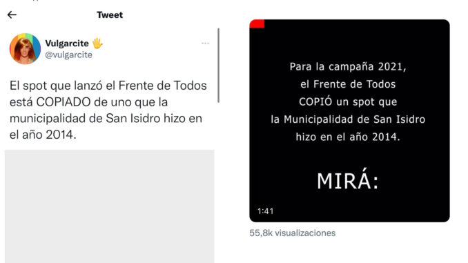 Muy parecido es el video de campaña que estos días estrenó el Frente de Todos y estallaron las redes sociales hablando de copia o incluso plagio.