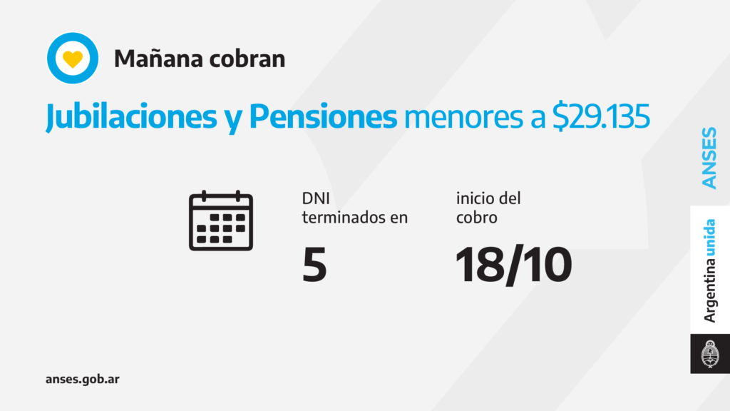 Las sucursales bancarias habilitadas atenderán por ventanilla a jubilados, jubiladas, pensionados y pensionadas con documentos terminados en 5 cuyos haberes NO SUPEREN la suma de 29.135 pesos.
