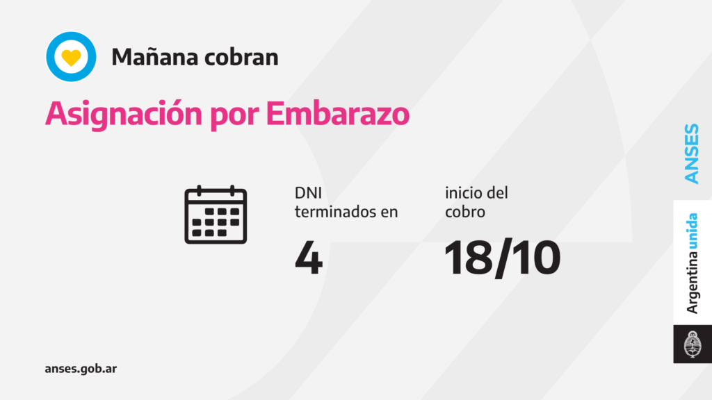 Con la utilización de la tarjeta de débito, mañana cobran la Asignación por Embarazo las titulares con documentos finalizados en 4.