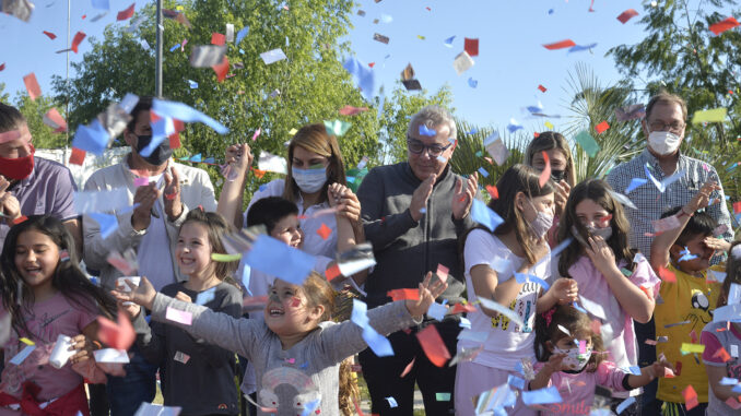 En el encuentro, el intendente realizó junto a vecinos y vecinas el tradicional corte de cinta dando por inaugurado el espacio. También descubrieron una placa conmemorativa y plantaron un lapacho que simboliza la fortaleza de la comunidad. Las familias, por su parte, se divirtieron con el show del Mago Reymond y disfrutaron de un catering con comidas y bebidas.