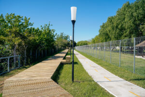 Con este nuevo tramo se suman 200 mts lineales al paseo, además, de una nueva bicisenda de hormigón y una pasarela de madera a lo largo de todo el recorrido. También se incorporaron nuevas luminarias, un nuevo sistema de riego con aspersores distribuido por todo el parque, y por último, se parquizó con césped y nuevas especies nativas.
