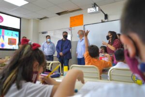En Lanús, acompañado por su intendente, Néstor Grindetti y el secretario de Educación, Empleo y Deportes, candidato a concejal, Damián Sala, Jorge Macri visitó una escuela bilingüe municipal, que es gratuita y tiene doble turno. Cuenta con aulas amplias, nuevas tecnologías, clases de robótica y, a partir del tercer año, se tomarán exámenes internacionales. Asimismo, forma parte del proyecto “Lanús Construye Futuro”. Es una serie de acciones conjuntas para mejorar la calidad educativa de niños, niñas y adolescentes de todo el distrito.