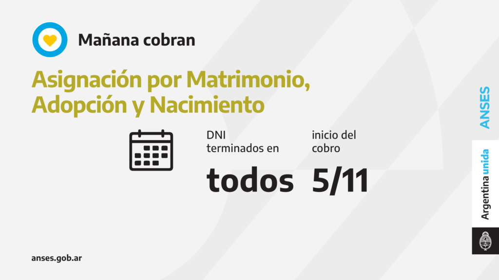 Desde mañana y hasta el 9 de diciembre se pagan las Asignaciones de Pago Único (Matrimonio, Adopción y Nacimiento) para todas las finalizaciones de documento.