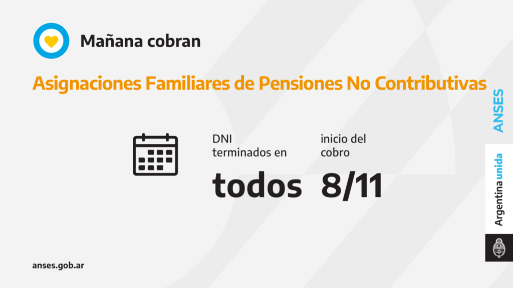 Desde mañana y hasta el 9 de diciembre, se pagan las Asignaciones Familiares de Pensiones No Contributivas (PNC) para todas las finalizaciones de documento.