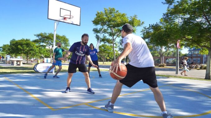 Además, participaron de la reapertura los chicos de Vicente López Básquet, una iniciativa que nació en 2017 cuando se empezó a organizar un grupo de jóvenes de entre 15 y 30 años a jugar en las canchas de 3×3. Ahora tienen una cuenta en Instagram (@vicentelopezbasquet) donde organizan sus actividades y convocan a los vecinos.