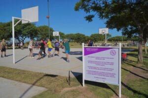 El fin de semana en Vicente López, mejoraron y ampliaron las canchas de Street Basquet, con la renovación de las cuatro canchas que ya existían y la inauguración de otras cuatro nuevas de hormigón con terminación antideslizante.