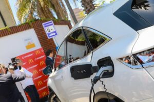 El intendente de San Isidro, Gustavo Posse, participó de la inauguración de la primera estación de carga para automóviles eléctricos en el icónico local de McDonald’s en Avenida Centenario 72. La presentación de este servicio innovador y sustentable estuvo a cargo de autoridades de la compañía Arcos Dorados y de Chargebox Net, empresa pionera en la movilidad eléctrica. Se trata de una alianza que apunta a expandir este servicio por todo el país.