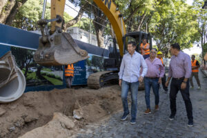 El jefe comunal contó que entre las mejoras, era de vital importancia ejecutar estos trabajos para instalar un nuevo colector de los desagües pluviales, ya que el sistema anterior era muy antiguo y de materiales que habían quedado fuera de uso. Debido a la presencia de grandes desniveles en la plaza, se tomó la decisión de generar esta cañería de desagüe principal por la calle Ituzaingó (debajo de los módulos de estacionamiento), en donde todos los ramales transversales a este se van conectando.