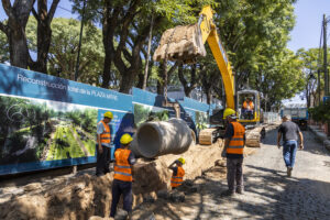 Luego, se construirán los pluviales dentro de la plaza y se pasará a trabajar a superficie para embellecer este espacio público con nuevos solados, parquización y puesta en valor de la escalinata.