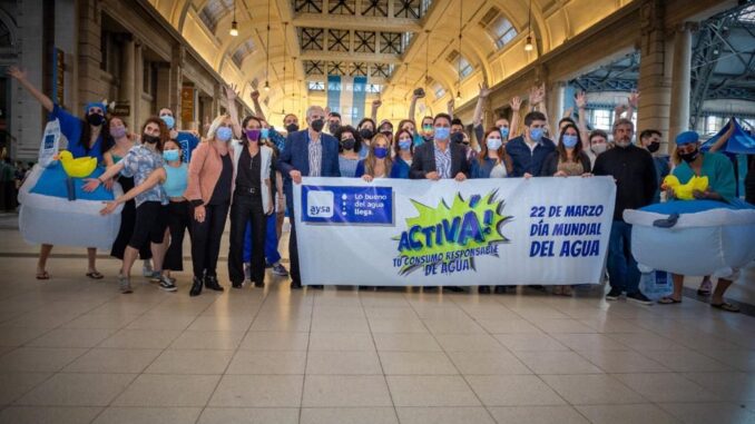 En conmemoración del Día Mundial del Agua, la empresa que preside Malena Galmarini, AySA, se hizo presente en la estación Retiro, terminal de la Línea Mitre, con un baile colectivo buscando concientizar al público sobre el cuidado de este recurso tan esencial para la vida de las personas. Con 25 artistas en escena, la puesta sorprendió a los pasajeros y pasajeras en medio del horario pico de la vuelta a casa.