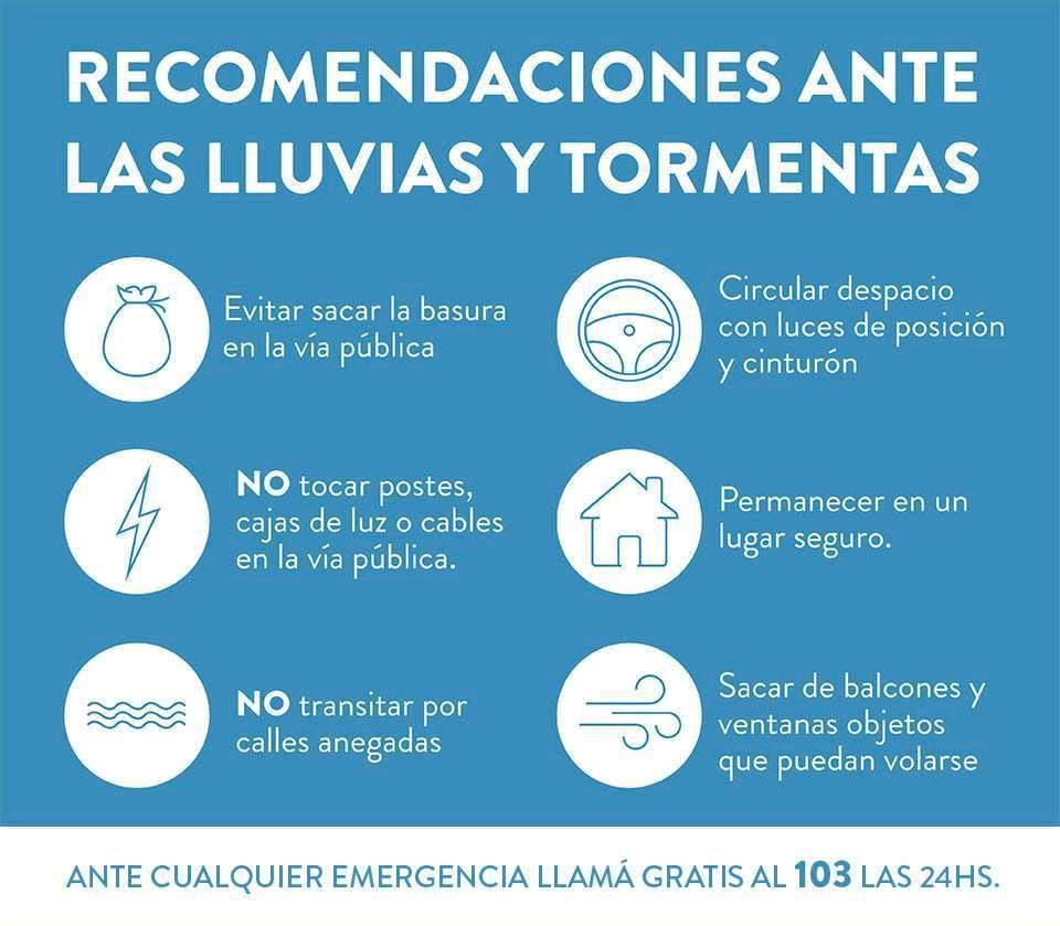Se pide a los vecinos no sacar la basura, evitando de esta forma la obstrucción de sumideros, como así también retirar objetos que puedan volarse en balcones y ventanas.