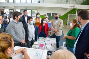 Como parte de las actividades previstas en la “Semana de la Vacunación”, en el vacunatorio visitado por las autoridades en el Microestadio Municipal de Hurlingham, se desarrolló una jornada donde se realizaron controles de altura, peso y tensión arterial, consultas médicas, se aplicaron vacunas Covid-19 y de calendario para completar esquemas de menores y adultos, y se montó, además, un stand de Salud Mental para obtener información.