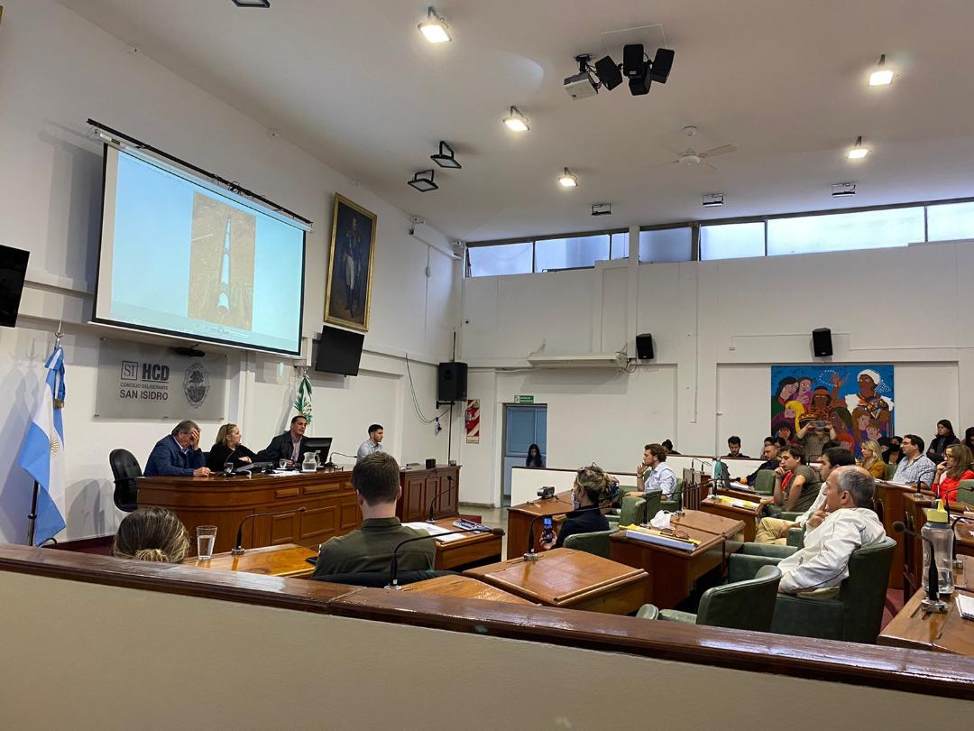Funcionarios del Municipio de San Isidro esta mañana se reunieron con ediles y vecinos en el recinto del Concejo Deliberante local para explicar los avances de las tareas de reconstrucción total de la Plaza Mitre.