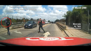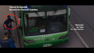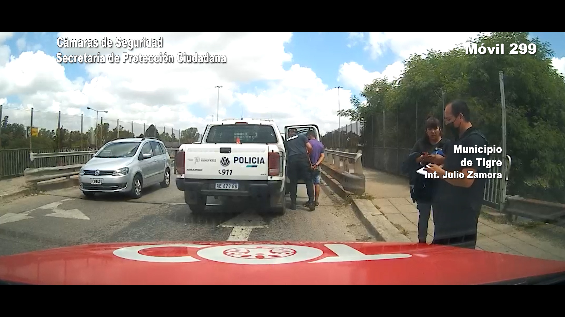 Por medio de las cámaras de videovigilancia instaladas en el distrito, operadores del centro de monitoreo realizaron el seguimiento al sospechoso y lo identificaron cuando huía a bordo de un colectivo de la línea 15. Los móviles que patrullaban la zona lograron interceptarlo en el puente de la calle Chilavert, en Benavídez, donde fue detenido y puesto a disposición de la Justicia.