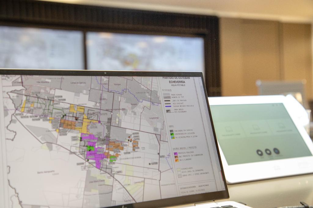 Dentro del plan de obras que lleva adelante AySA, el municipio de Esteban Echeverría cuenta con 48 obras activas en distintas etapas tanto para la mejora de sus servicios como para la expansión de los mismos, con el objetivo para el 2023 de llegar a un 70% de cobertura en materia de agua y 73% en cloacas.