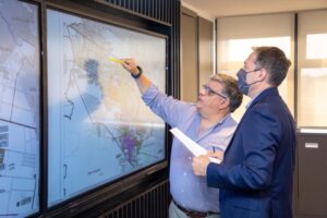 La presidenta de AySA, Malena Galmarini y el intendente de Estaban Echeverría, Fernando Gray, se reunieron para analizar el avance de las obras que actualmente se encuentran en ejecución y continuar trabajando en la expansión del servicio de agua y cloacas a las vecinas y vecinos del partido de Esteban Echeverría.