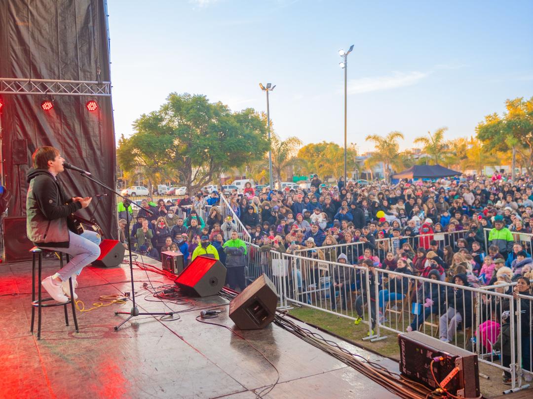 En el marco de los festejos por el Día de la Patria que organizó el Municipio en el Parque del Bicentenario, a los que concurrieron más de 7.000 personas durante toda la jornada, el famoso cantautor tuvo el cierre a su cargo; también subieron al escenario cantantes, bailarines y grupos folklóricos locales. Además, se instalaron stands de comidas típicas y de los Talleres Culturales Municipales que presentaron su producción.![]()