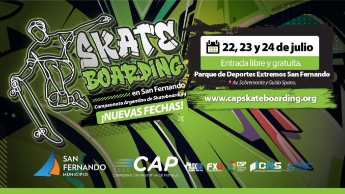 El Municipio de San Fernando, junto al Comité Nacional de Skateboarding, la Confederación Argentina de Patinaje, organizaciones y marcas, patrocinan esta competencia que se disputará en el Parque Municipal de Deportes Extremos, sito en Av. Sobremonte y Guido Spano, Virreyes.