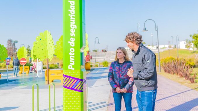 En el Parque del Bicentenario fueron presentados por el Intendente Juan Andreotti y la Secretaria Eva Andreotti un Banco Rojo instalado en memoria de las víctimas de violencia de género, y se mostró el funcionamiento de los nuevos Tótems de Seguridad que están conectados en forma directa con el Centro de Operaciones municipal para emergencias en el caso de necesitar ayuda, que enviará policía, ambulancia o bomberos durante las 24 horas.