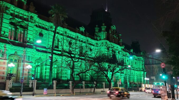 El Palacio de las Aguas Corrientes se iluminó de verde. Aysa, la empresa prestadora de los servicios de agua potable y cloaca, con motivo del Día Mundial del Medio Ambiente iluminó su emblemático edificio de verde para concientizar sobre el cuidado del Planeta.