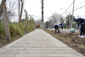 El intendente Julio Zamora supervisó los trabajos realizados en articulación con cooperativas locales en el barrio El Zorzal, entre las calles Washington y Chile. Las labores se efectúan en todas las localidades del distrito, con un total de 20.000m lineales proyectados para este año. El fin es mejorar la circulación y la seguridad de los peatones.