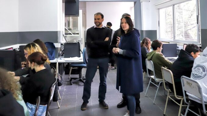 La intendenta de Vicente López, Soledad Martínez, acompañó a los docentes y alumnos en una clase de informática en la Escuela Municipal Secundaria Paula Albarracín.