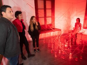 Entre los expositores, Mateo dijo: “Presento una performance de mixing, una canción que habla de las disidencias en búsqueda de vivir la mejor versión de quien uno es. Lo lindo de esta muestra es que es multidisciplinaria, con recitado de poesía, fotografía, artes plásticas y otras performances. Es un espacio de encuentro y diálogo, un grupo que venimos juntándonos hace tiempo, y también llega gente que no conocemos y es muy lindo enredarnos, que es el propósito de esta muestra. El Municipio nos provee su espacio y recursos como la iluminación. Nos sentimos muy respetados y cuidados; nuestro arte es muy particular y distinto al arte mainstream más popular. Y también es muy lindo que podamos habitar espacios consagrados de los que históricamente se nos ha excluido, poniéndonos en valor al abrazarnos e invitarnos a hacer una muestra”.A su vez, el fotógrafo Sebastián Felice comentó: “Hago fotos en las Marchas del Orgullo de conurbano y CABA. La primera vez en 2019 y después de la pandemia, con la vuelta de las marchas, empecé a retratar a los asistentes. Acá hay fotos que son planos bien cerrados de las personas que participan de las marchas. Cada marcha tiene su personalidad, y se genera una interacción muy interesante. Agradezco la invitación a este lugar hermoso, que es una casa histórica especial para las muestras de arte, y la buena recepción de todos los asistentes”.