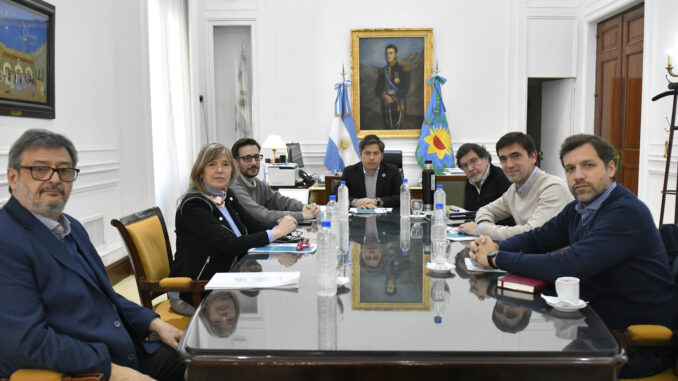 El gobernador de la provincia de Buenos Aires, Axel Kicillof, encabezó esta mañana una reunión de trabajo con el diputado nacional Rogelio Iparaguirre, junto a la ministra de Gobierno, Cristina Álvarez Rodríguez; su par de Hábitat y Desarrollo Urbano, Agustín Simone; el director general de Cultura y Educación, Alberto Sileoni; el vicejefe de Gabinete, Juan Pablo de Jesús; y el subsecretario de Territorio y Desarrollo Sustentable, Daniel Guastavino.