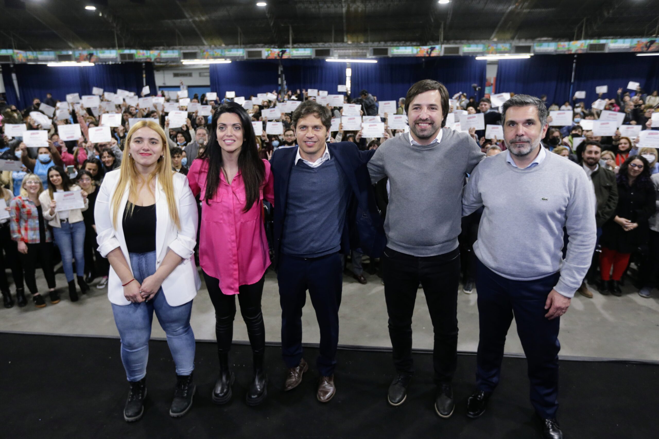 El gobernador de la provincia de Buenos Aires, Axel Kicillof, encabezó esta tarde un acto de reconocimiento a las y los trabajadores que se desempeñaron en las postas de vacunación contra el Covid-19 en Berazategui. Fue en el Centro de Actividades Roberto de Vicenzo, junto a la directora ejecutiva del PAMI, Luana Volnovich; el ministro de Salud, Nicolás Kreplak; el intendente local, Juan José Mussi; el secretario municipal de Salud Pública e Higiene, Pablo Costa; y la concejala Macarena Quinteros.