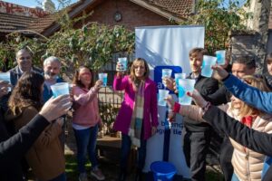 Tras conversar con vecinas y vecinos beneficiados que expresaron su alegría, Malena Galmarini destacó: “Nos encontramos nuevamente en Morón habilitando una red para 12.500 vecinos y vecinas. Para algunos es solamente abrir una canilla, para nosotros es traer dignidad. Es darles a vecinas como Lucía y Claudia, que nos recibieron en sus casas para brindar, la posibilidad de una mejor salud y, con las cloacas, de además cuidar el medio ambiente”.