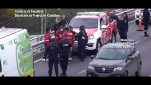 Las cámaras de videovigilancia del distrito captaron el momento en el que una joven quiso arrojarse del puente ubicado sobre Ruta 197 y Paul Groussac e inmediatamente alertaron el hecho a los móviles que patrullaban la zona. Con el apoyo de ambulancias, se logró asistir a la víctima y trasladarla al hospital de cercanía.